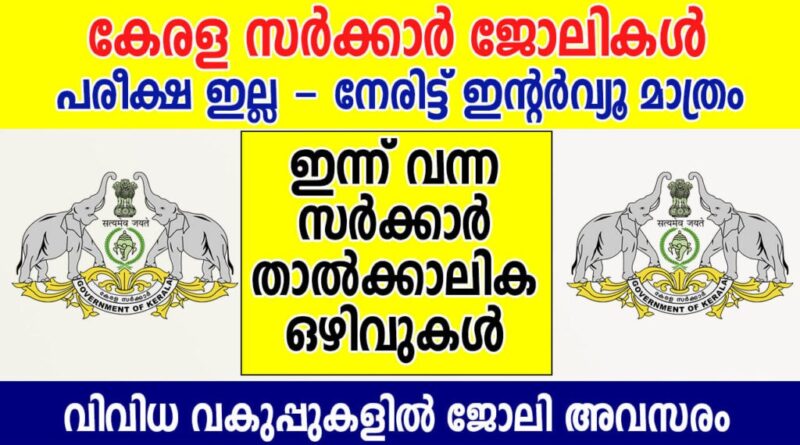 കേരള സർക്കാരിന്റെ വിവിധ ജില്ലകളിലായുള്ള ഓഫീസുകളിൽ ഇപ്പോൾ വന്നിട്ടുള്ള താത്കാലിക ജോലികൾ സീനിയര് അക്കൗണ്ടന്റ് നിയമനം പ്രധാനമന്ത്രി ഗ്രാമ സഡക് യോജന പദ്ധതികളുടെ നിര്വഹണത്തിന് പ്രോഗ്രാം ഇംപ്ലിമെന്റേഷന്