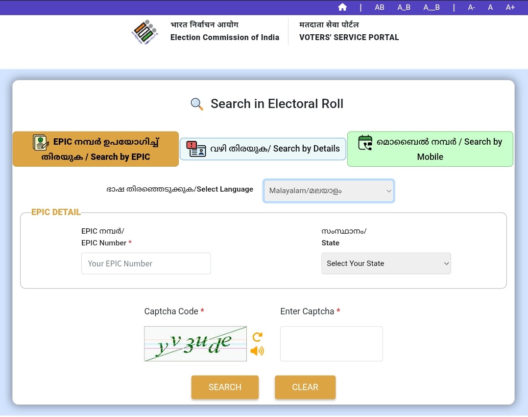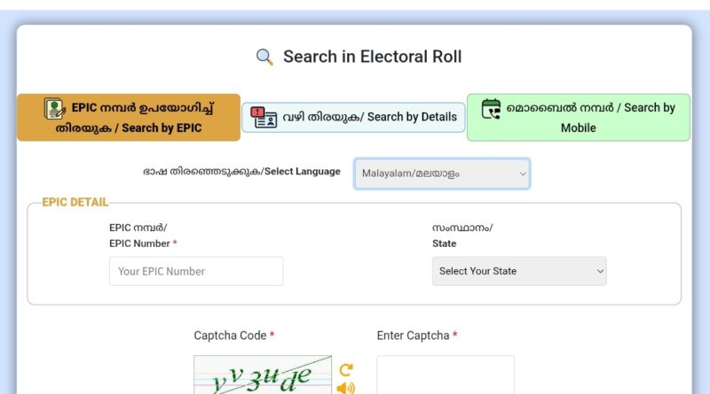 EPIC നമ്പർ (വോട്ടർ ഐഡി നമ്പർ) ഉപയോഗിച്ച് തിരയൽ