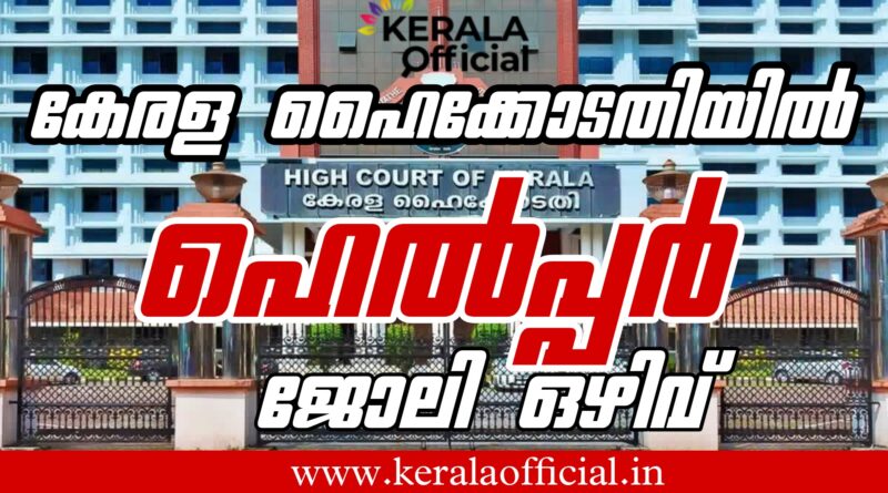 കേരള ഹൈക്കോടതിയിൽ ഹെൽപ്പർ (Helper) തസ്തികയിലേക്കുള്ള നിയമനത്തിനായി അപേക്ഷകൾ ക്ഷണിച്ചു
