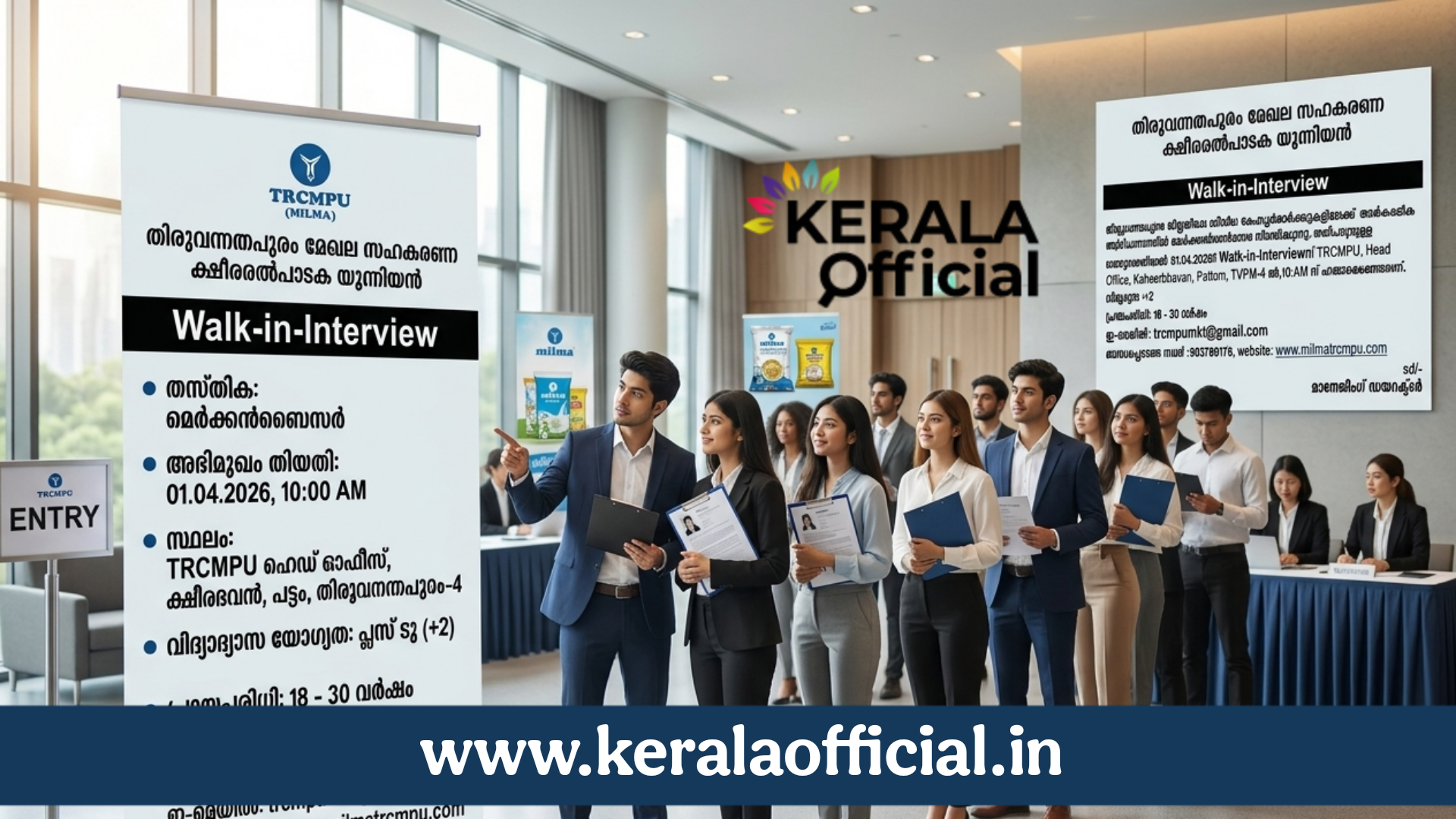 • സ്ഥലം: TRCMPU, ഹെഡ് ഓഫീസ്, ക്ഷീരഭവൻ, പട്ടം, തിരുവനന്തപുരം – 4.