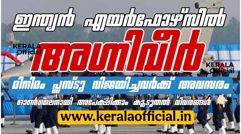 Read moreഇന്ത്യൻ വ്യോമസേനയിൽ (IAF) അഗ്നിപഥ് പദ്ധതിക്ക് കീഴിൽ അഗ്നിവീർവായു (Agniveervayu) പുതിയ ബാച്ചിലേക്ക് യോഗ്യരായ ഉദ്യോഗാർത്ഥികളെ നിയമിക്കുന്നതിനായി അപേക്ഷകൾ ക്ഷണിക്കുന്നു യോഗ്യതാ മാനദണ്ഡങ്ങൾ പ്രായം: 2006 ജനുവരി