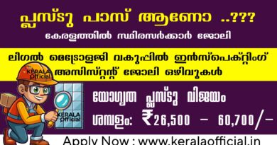 • ഒക്യുപേഷണൽ തെറാപ്പിസ്റ്റ് എന്നീ ഒഴിവുകളിലേക്ക് യോഗ്യതയുള്ള ഉദ്യോഗാർത്ഥികൾക്ക് അപേക്ഷിക്കാം.
